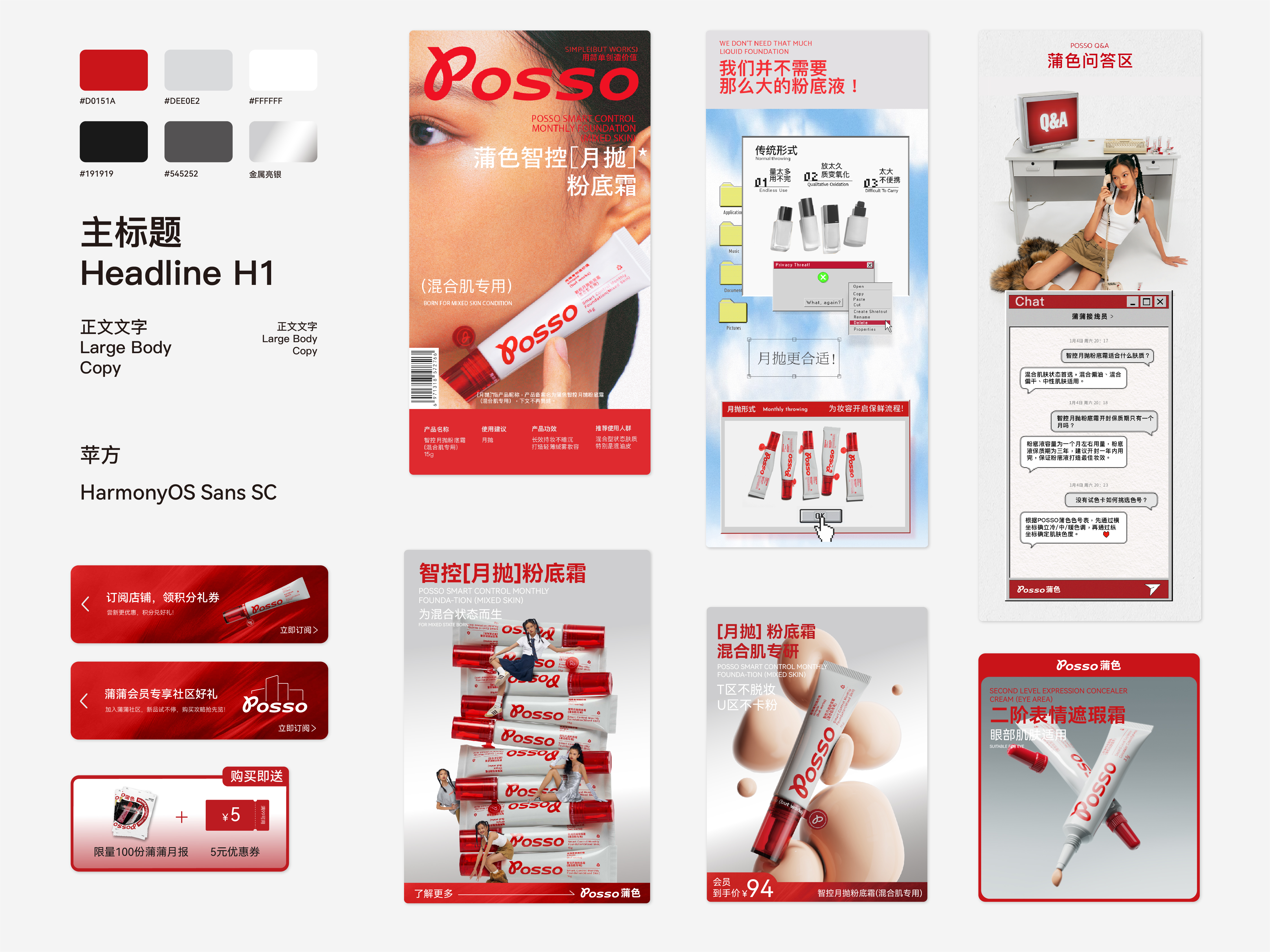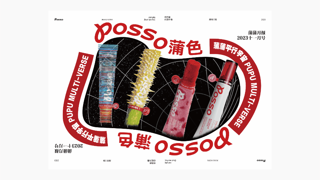 蒲色喺一个综合型嘅生活品牌,佢所聚焦嘅喺依家啲后生人嘅美好生活,提倡一种更加简单直接嘅生活方式,奋身响成爲大多数后生人嘅实用生活研究所,用简单去创造价值。 所以我哋跟足佢嘅品牌调性同埋视觉风格嚟帮佢搞咗冚套嘅设计同规划,从产品包装设计、新品以及新系列规划、同埋各种平台嘅海报设计。 POSSO is a comprehensive lifestyle brand that gathers the dreams of young people and advocates a simpler and more practical way of life. It is committed to becoming a practical research institute for most young people, creating value through simplicity. We have designed product packaging and planned packaging for new/series products based on brand tone and visual style, as well as designed poster materials for the self media podium.