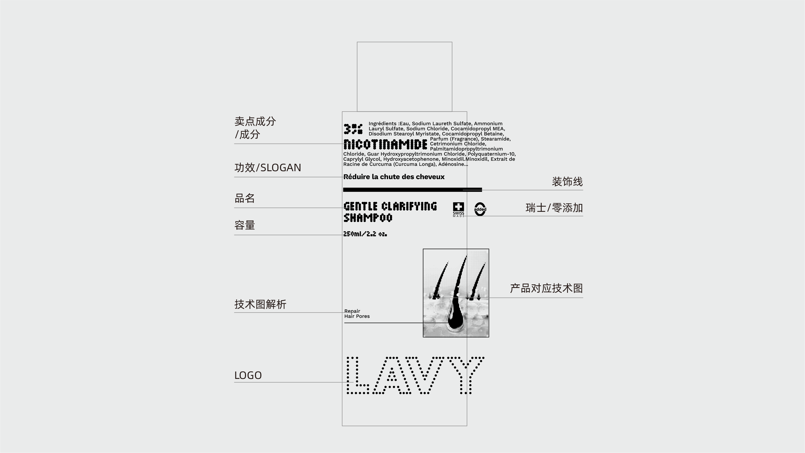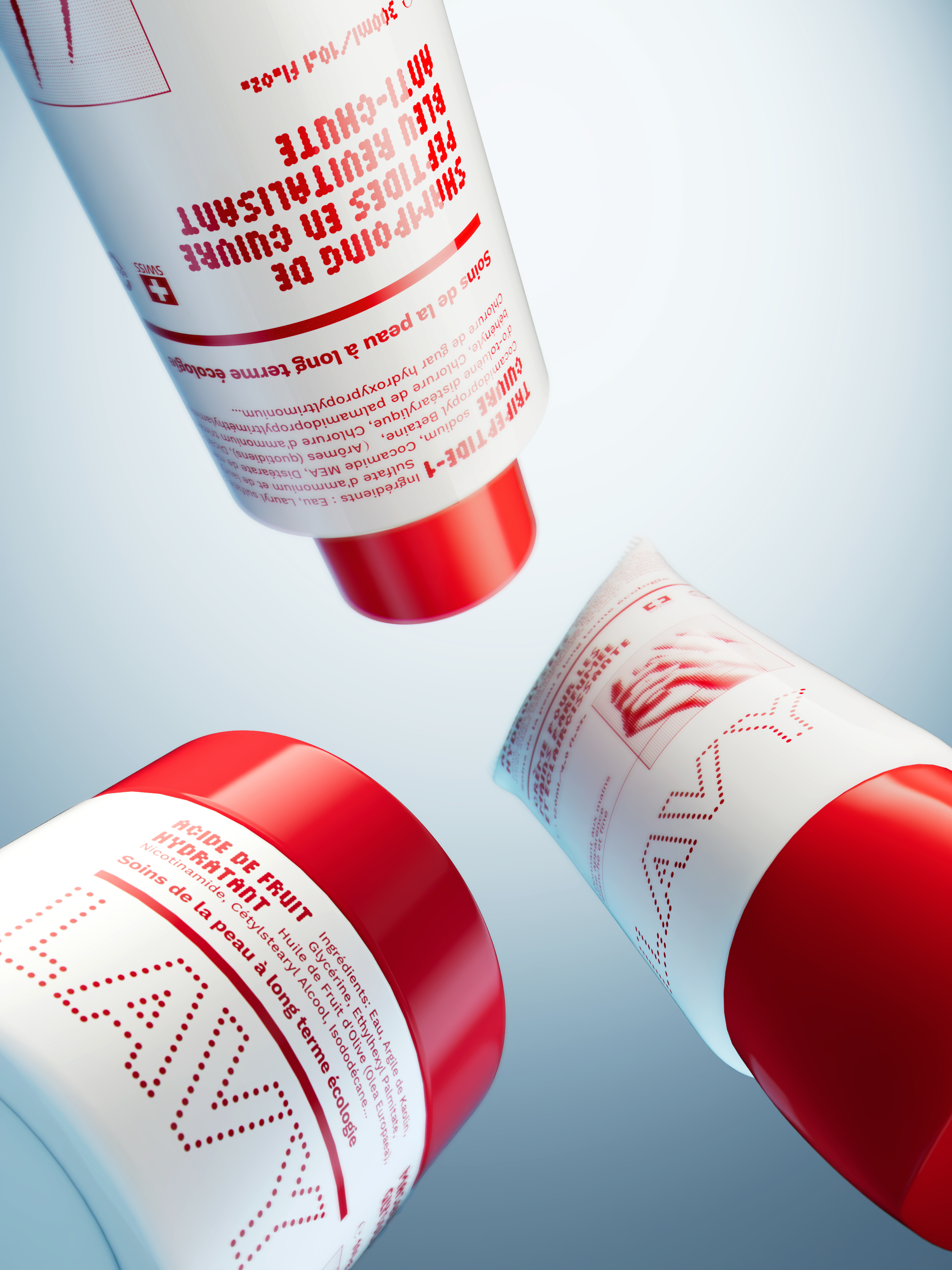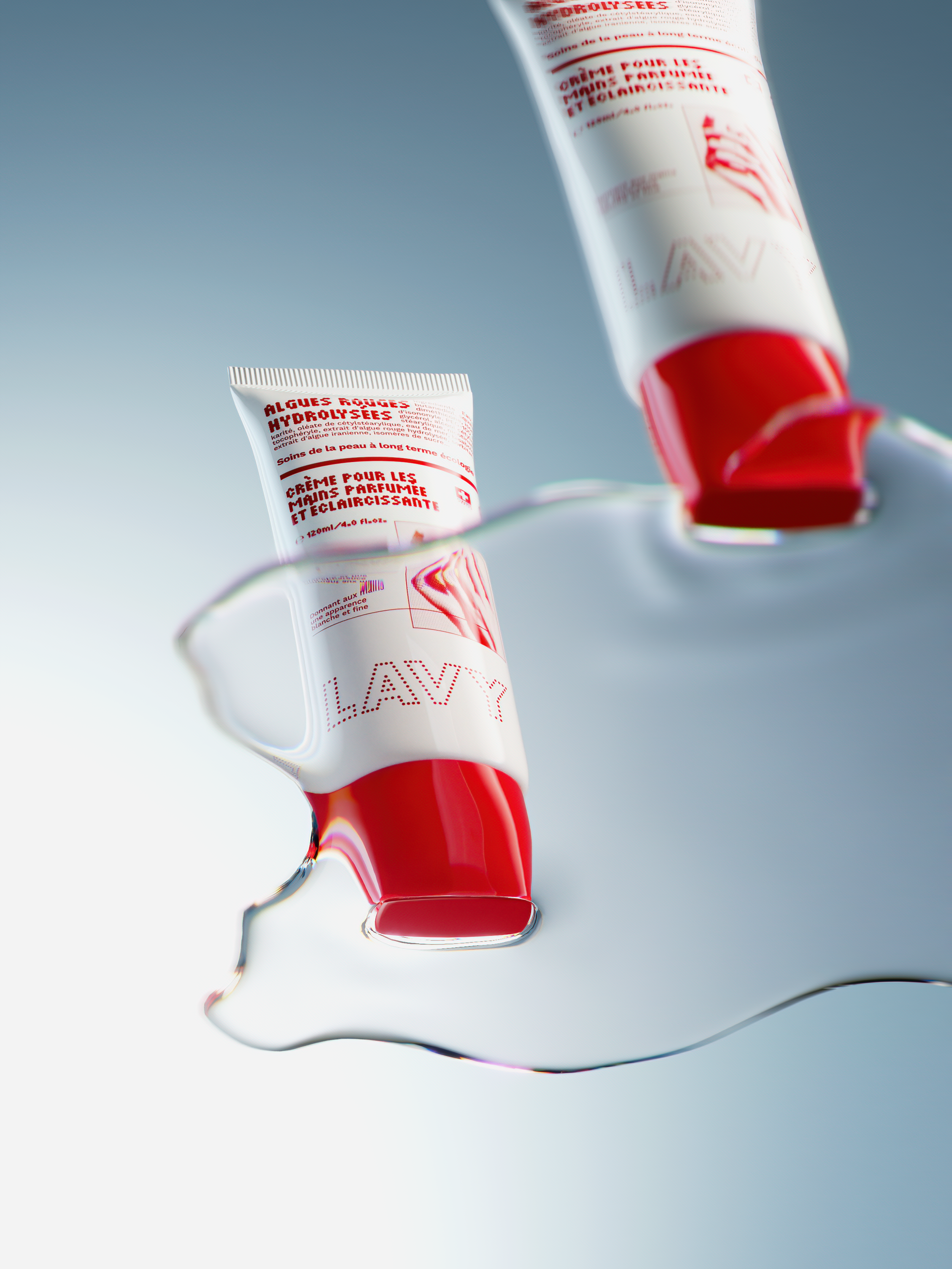 Lavy 萊威係一個誕生於瑞士嘅藥妝級個護品牌,透過極簡配色同設計突出品牌嘅專業度以及功效性。一個由紅色實驗性圓點為錨點嘅設計靈感元素,模擬喺顯微鏡下放大後嘅活性細胞分子,我哋希望透過微觀嘅觀察視角體現對消費者專業性同極致化嘅關注,提供安全、溫和、零添加嘅強功效型個護體驗,喺每款產品嘅視覺應用上,我哋將圓點概念延申至文字標誌及各類可視化概念圖,從每一個 “ 點 ” 嘅細微關注出發,將目標擴散至肌膚狀態嘅最終改善同解決過程,同時整套系列融入咗統一嘅視覺衝擊色,塑造品牌超高辨識度同強記憶性。 Lavy is a Swiss-born cosmeceutical personal care brand that emphasises professionalism and efficacy through minimalist colour schemes and design. The design inspiration centres on a red experimental dot, representing active cellular molecules magnified under a microscope. We aim to convey a professional and meticulous focus on consumers through a microscopic perspective, offering a safe, gentle, and additive-free personal care experience with powerful efficacy. We extend the dot concept to the visual application of textual logos and various visual concept diagrams in each product. Starting from the detail attention on every ‘dot,’ we expand the focus to the ultimate improvement and resolution of skin conditions. Meanwhile, the entire series incorporates a unified visual impact colour, establishing the brand's high recognisability and strong memorability.