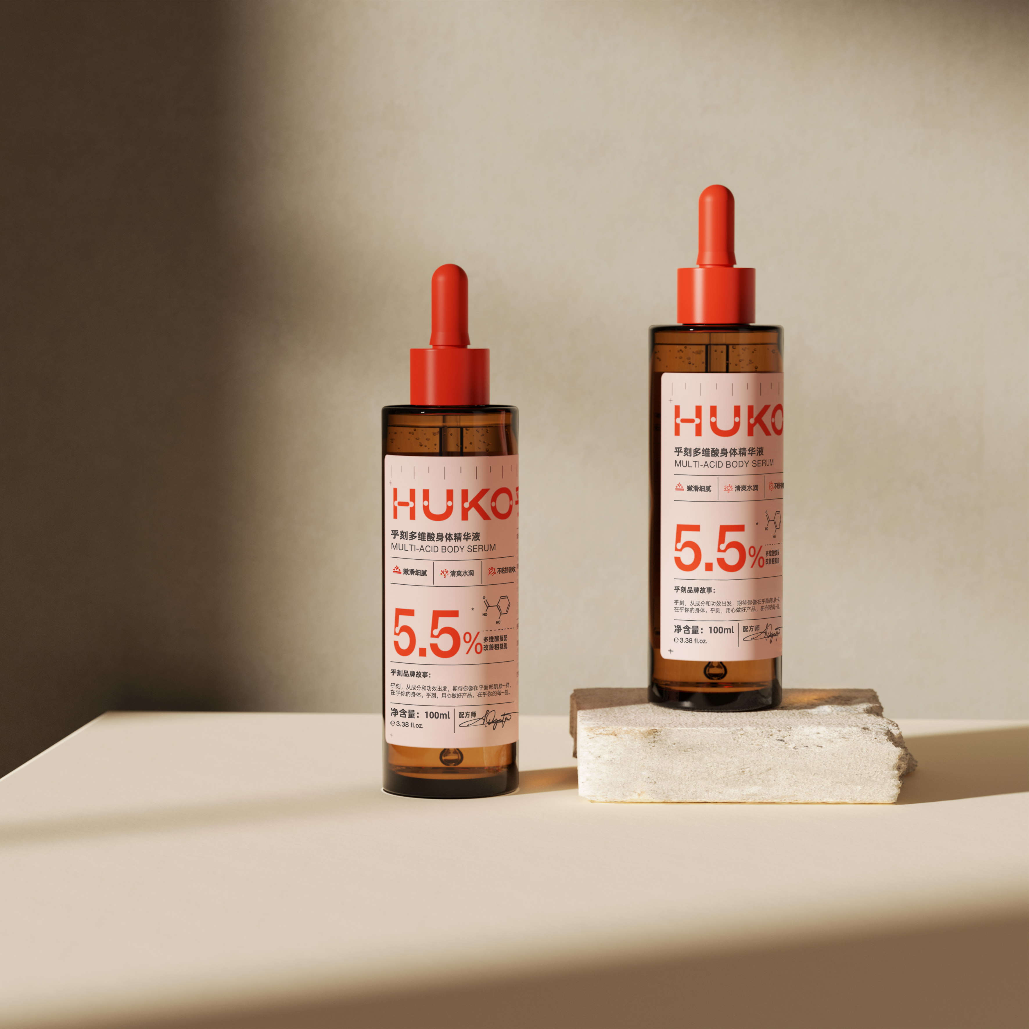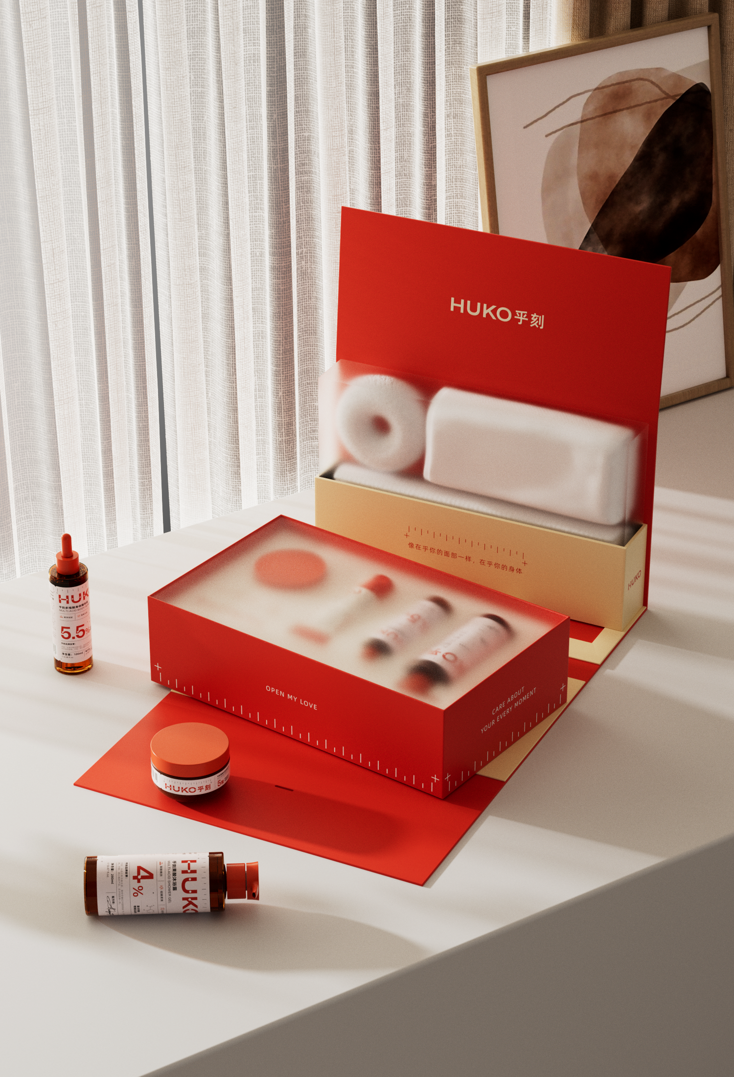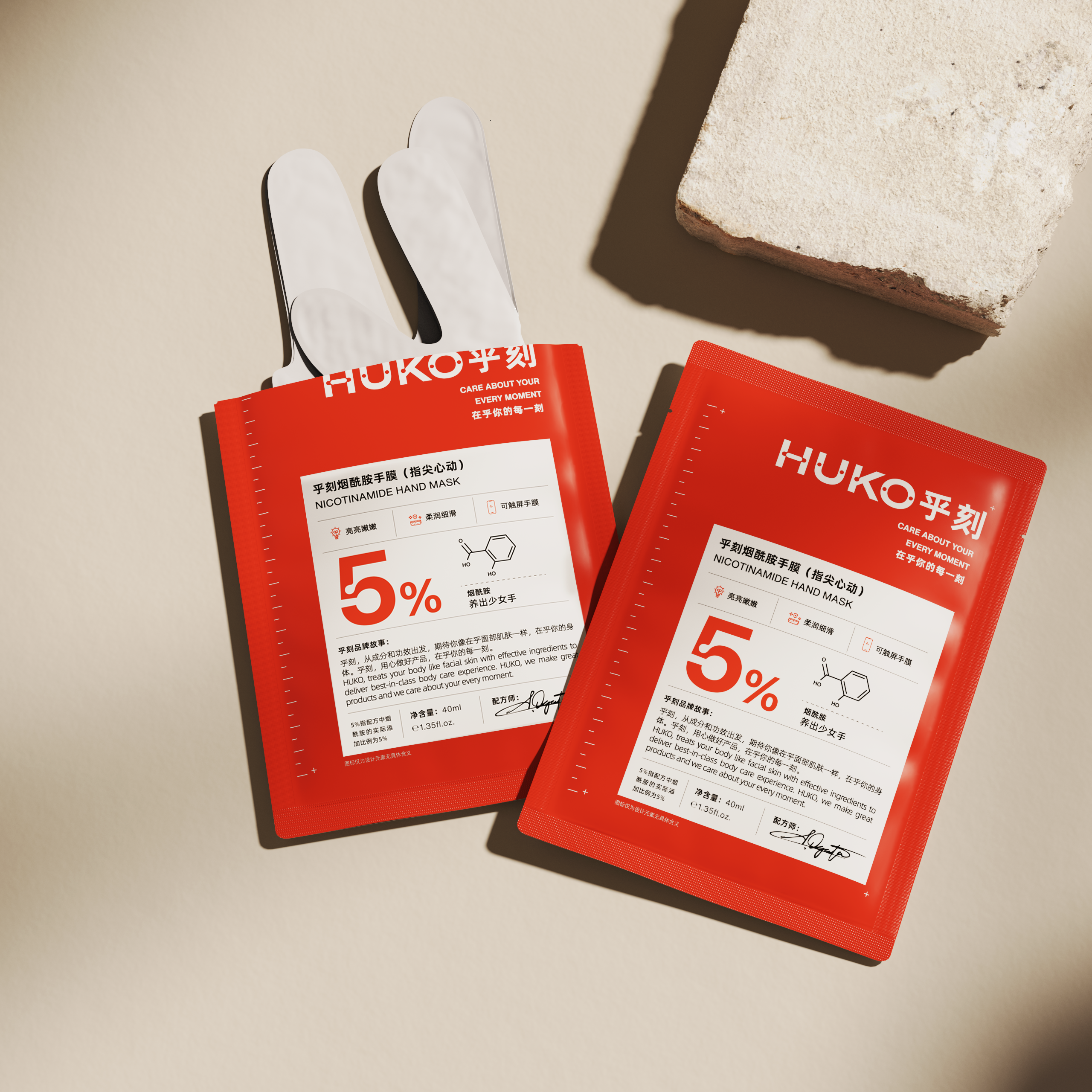 HUKO乎刻,在乎你嘅每一刻。 HUKO乎刻喺一个全新嘅精细化个护品牌,品牌着紧喺消费者嘅每一个细节位,希望创造出可以拆掂消费者每一个细节需求嘅产品。 卡尺上面嘅刻度表达嘅喺“每一刻”,谂住传递出品牌着紧消费者嘅每一刻,展现出品牌嘅理念同埋温度。 我哋嘅设计聚焦响品牌对自己专业度嘅自信,品牌对生物科技进化嘅过程从懵䒏䒏到熟头熟路嘅每步探索,以及对产品成分高精度比例嘅思考同埋科学搭配。 每款产品我哋都用咗充满专业同活力嘅品牌色嚟到搭配劲有品牌味嘅产品标贴。醒目嘅品牌色更擒得住消费者对眼,品牌独有嘅刻度元素定班出现,又可以加深消费者对品牌嘅记性,简短擘大嘅数字信息摆做主视觉焦点,更可以进一步里撩起消费者对产品嘅好奇,而添加化学符号标志就可以等产品更专业。 HUKO cares about every moment of you. HUKO is a bran-new refined personal care brand that cares about every detail of consumers and aims to create products that can meet every detail of consumers' needs. The scale on the caliper expresses "every moment" and conveys the brand's concern for consumers in every moment, reflecting the brand's philosophy and temperature. Focusing on the brand's confidence in its own professionalism, it discusses the brand's step-by-step exploration of the evolution process of biotechnology from ambiguity to clarity, as well as high-precision thinking and scientific matching of product ingredient ratios. Each product uses professional and vibrant brand colors paired with distinctive product labels. Distinctive brand colors are easier to capture consumers' attention. The unique scale elements of the brand are fixed and appear, deepening consumers' brand memory. Short and enlarged digital information serves as the main visual focus, attracting attention and further expanding consumers' curiosity about the product. Adding chemical symbols and logos makes the product more professional.